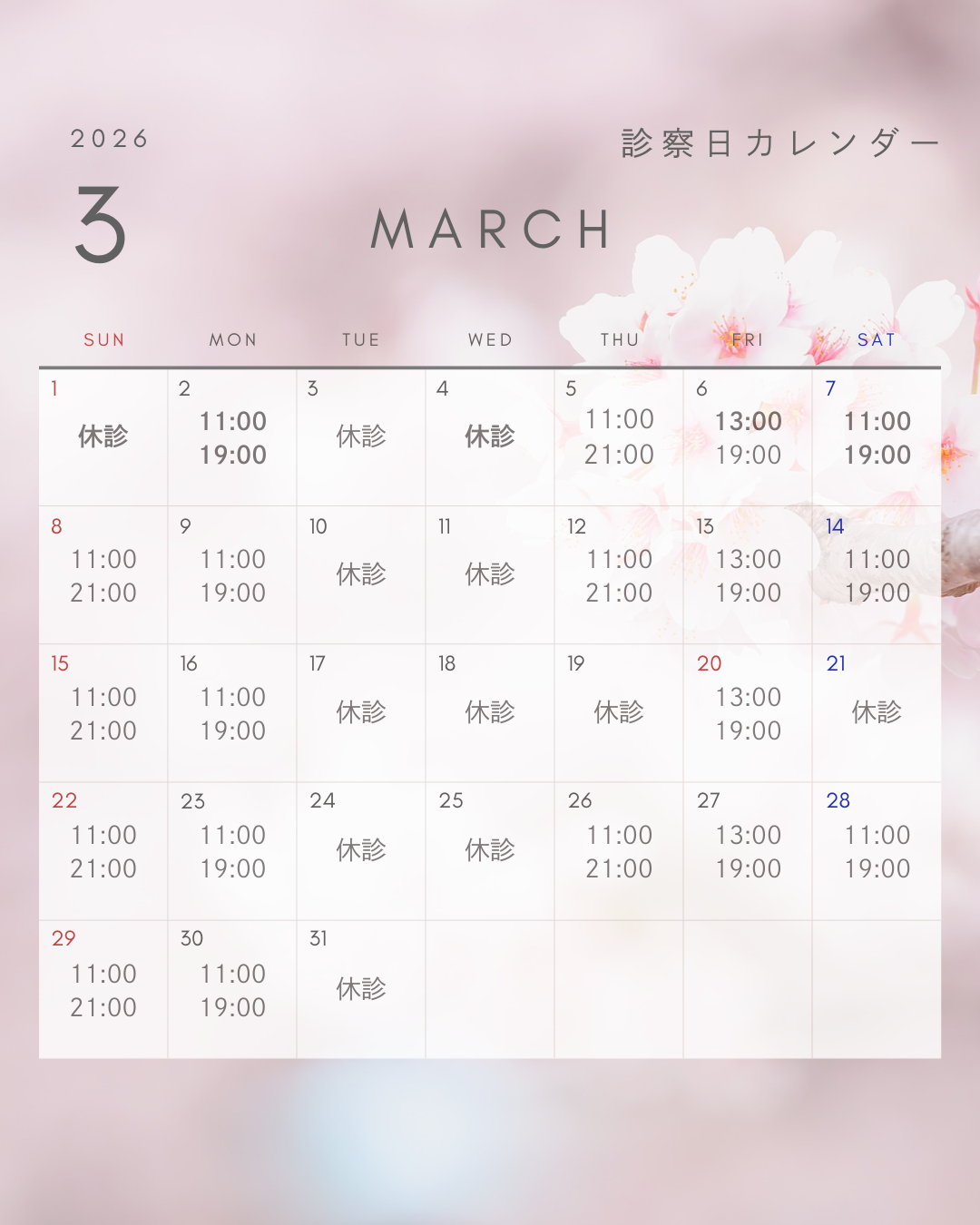 3月の診察日について