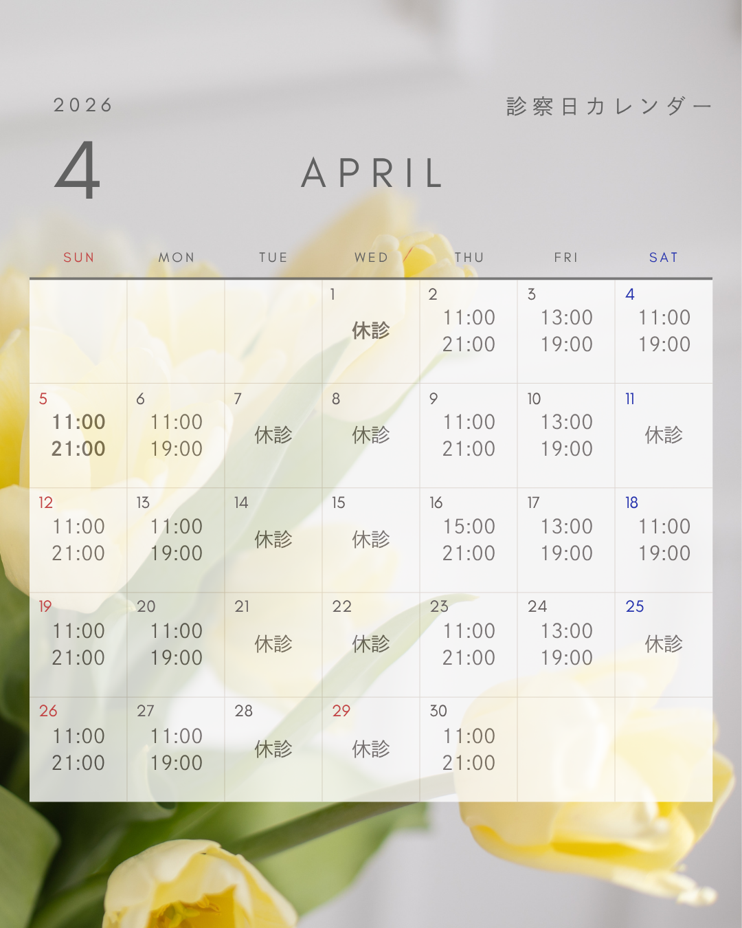 4月の診察日について