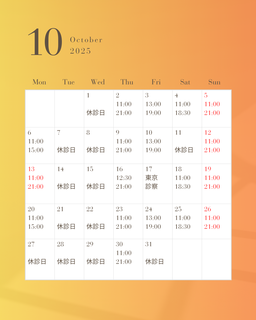 10月の診察日について